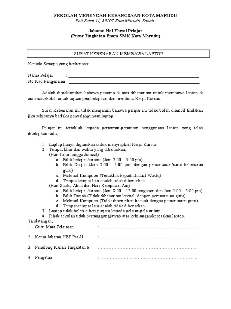 . Simpan Simpan Surat Kebenaran Membawa Laptop Untuk Nanti. Surat Kebenaran Membawa Laptop. Contoh Peringatan Bayaran Pibg.